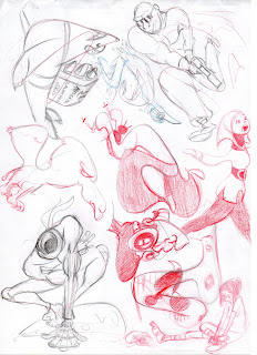 These are just some doodles from when I was working on Gumball at Sio in Germany. If you don´t know this game, you where you start with a quick sribble, then give it to your friend to turn into a drawing. I played this with my good friend Michael Brady. http://bradyade.blogspot.ie/